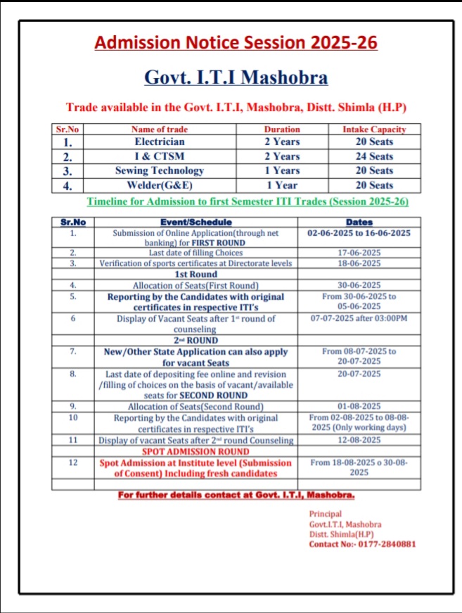 ITI Admission for the Session 2025-26 starting w.e.f. 02.06.2025 Leave a Comment / By Iti Mashobra / July 6, 2024